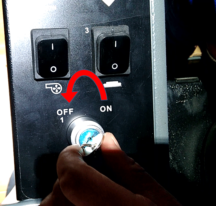 6.逆時針扭動鑰匙至"OFF"檔,關(guān)閉電源
